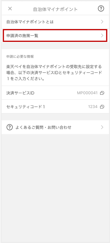 [申請済の施策一覧]をタップ -