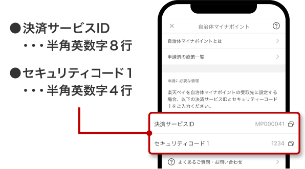 - 【楽天ペイ】決済サービスIDとセキュリティコード1には何を入力すればいいですか?