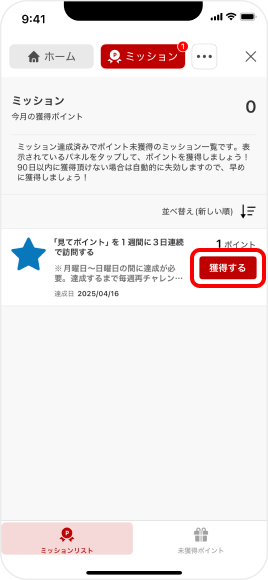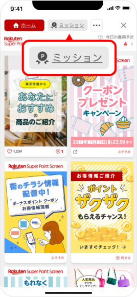 [ミッション]をタップ