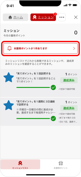 未獲得ポイントを確認 -