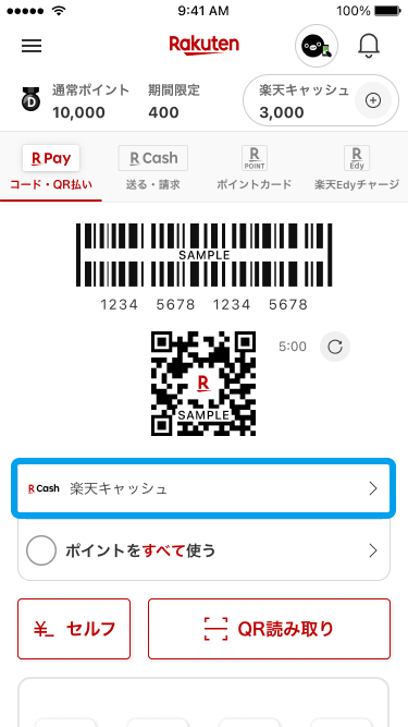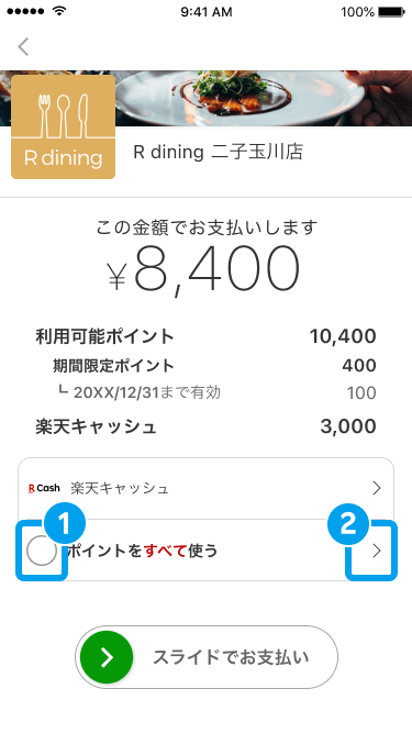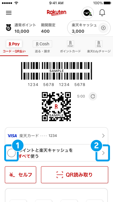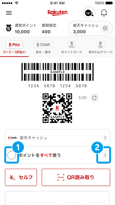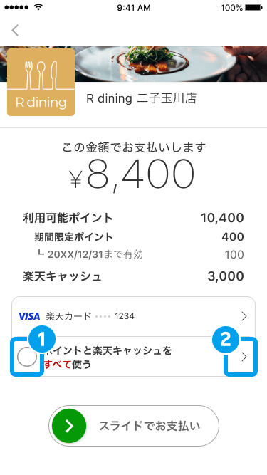 ポイントの設定(お支払い元が楽天キャッシュの場合)